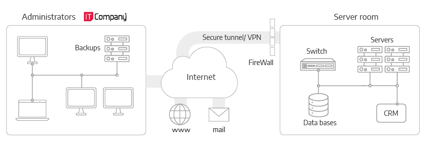 At IT Company, we ensure continuity of operations, a fast and effective response to support requests, data security, and competent IT consulting. We develop the IT infrastructure in line with the client's business needs. All our activities are focused on achieving goals that matter from our clients’ perspective. We have developed procedures that allow us to execute projects efficiently while maintaining excellent communication with clients. Above all, IT Company delivers professional IT support.