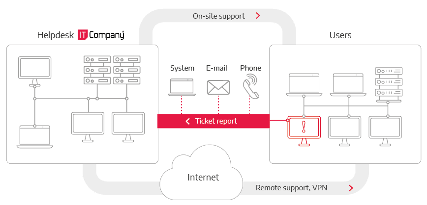 The scope of IT support is broad and depends on the specific needs of each client. Business IT support includes: technical support - IT helpdesk, server administration, and network management.